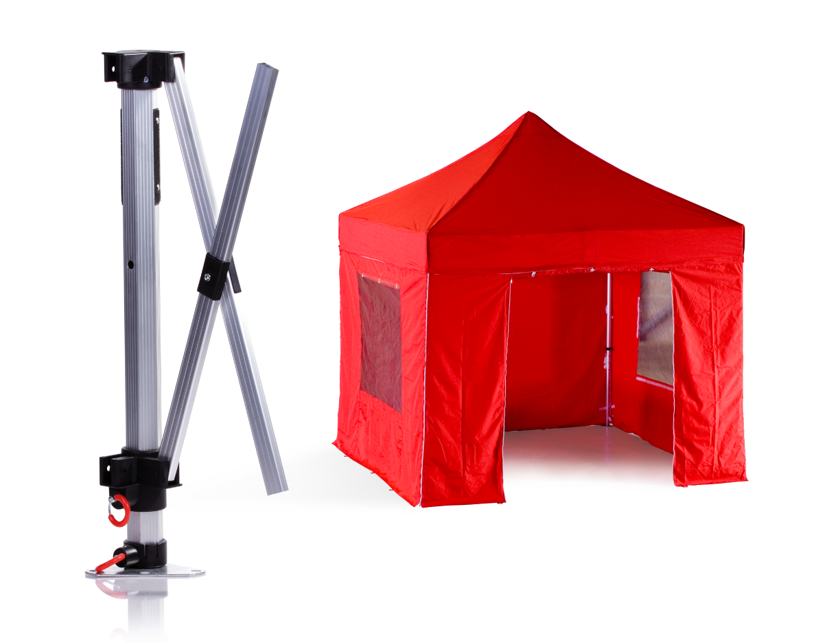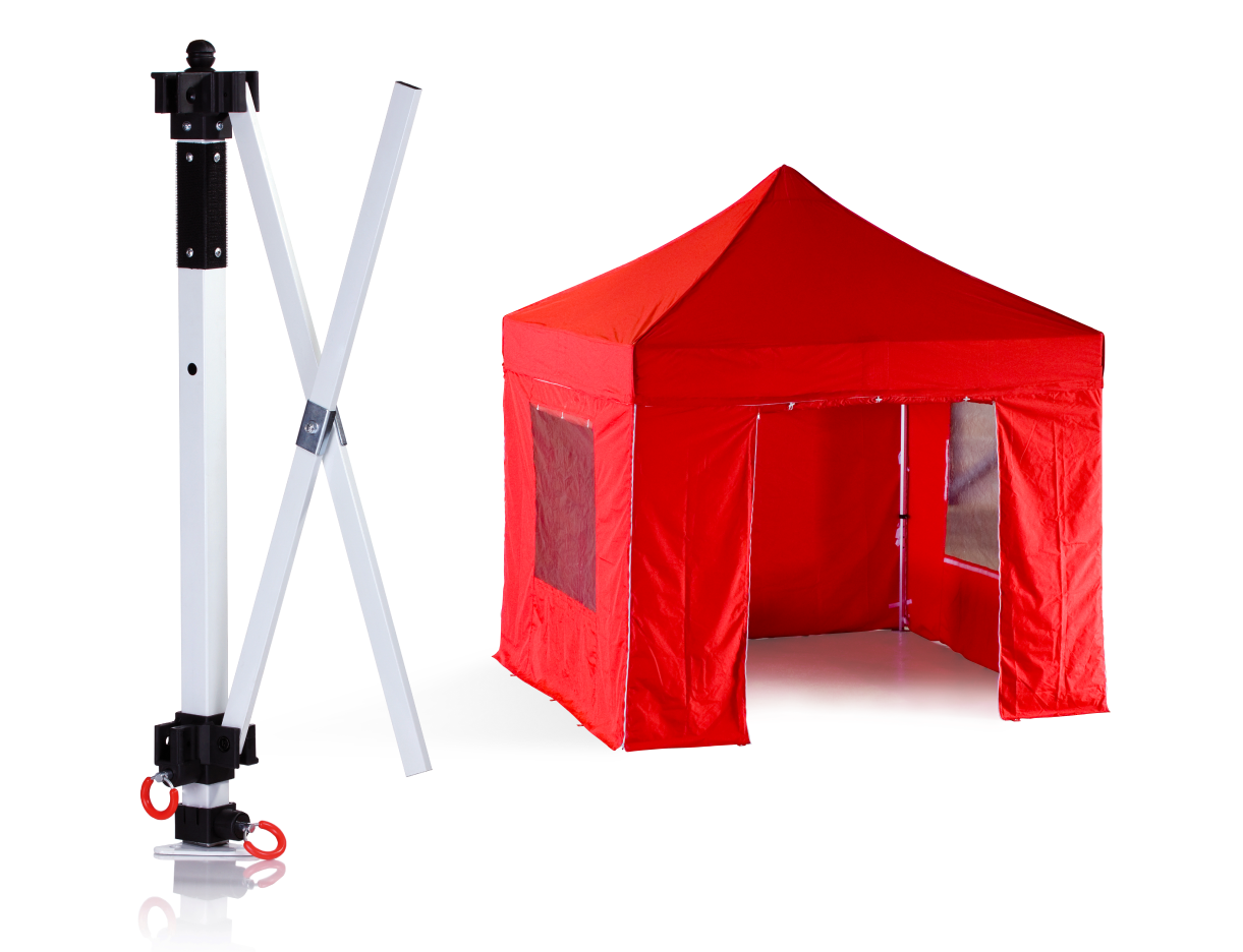 The best-seller, this model is the confluence of strength and ease. An aluminum structure with hexagonal legs and reinforced crossbars, it can be erected in a few minutes or less. The go-to choice for frequent use.